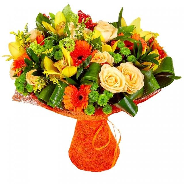 Герберы сочетают в себе простоту и роскошь, скромность и изящество. Цветочная композиция, дополненная элегантными розами и нежными орхидеями, призвана подарить яркие эмоции коллеге по работе в день рождения. Любимые жена, мама или бабушка оценят ваш утонченный вкус при выборе столь выразительного комплекта и вмиг забудут все обиды.